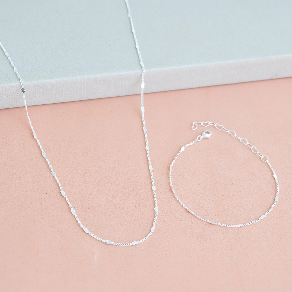 Conjunto Detalhe Colar 45cm + Pulseira Banhado a Prata 925