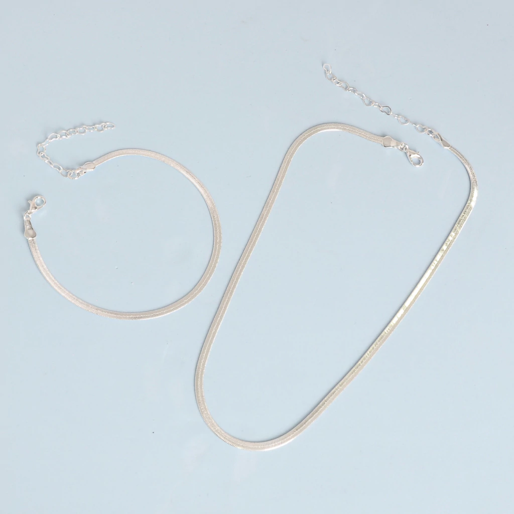 Kit Connjunto Chocker e Pulseira Fita Banhado a Prata 925