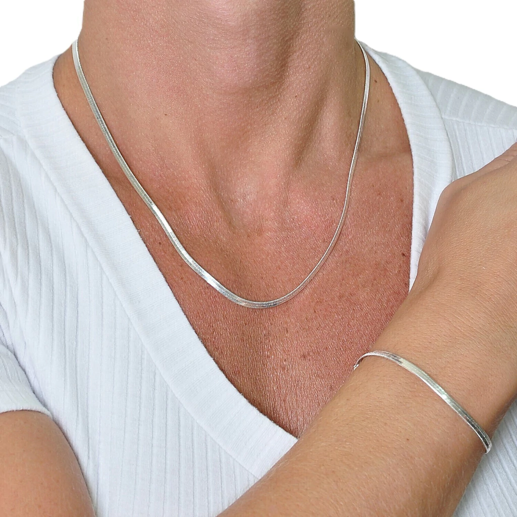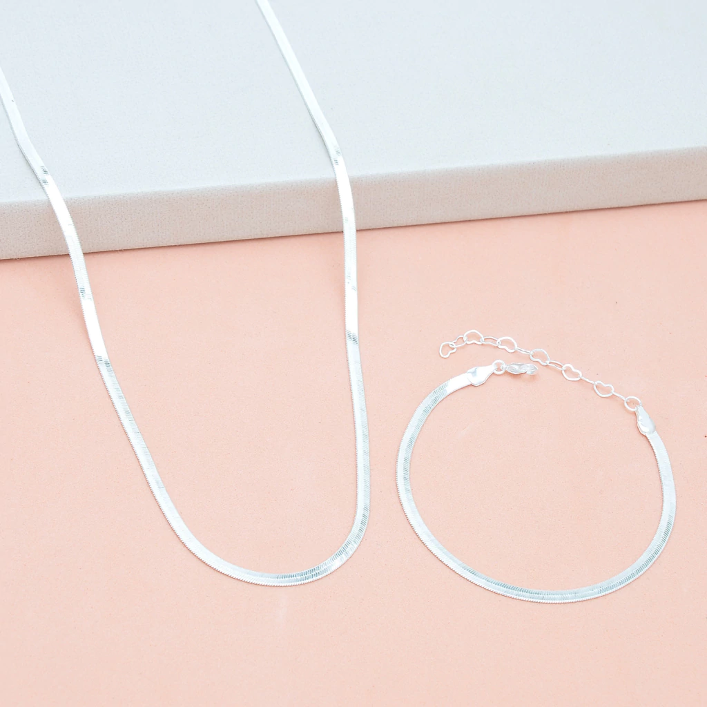 Conjunto Fita Colar 45cm + Pulseira Banhado a Prata 925