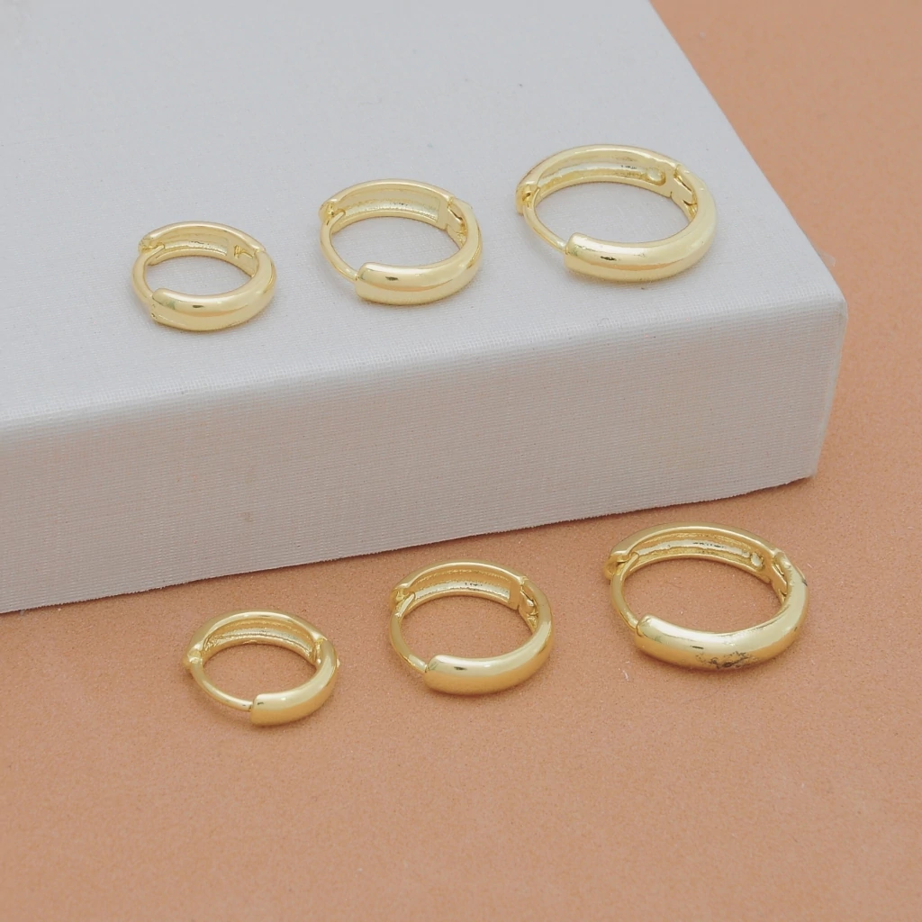 03 Pares Brinco Argola Lisa Banhada a Ouro 925