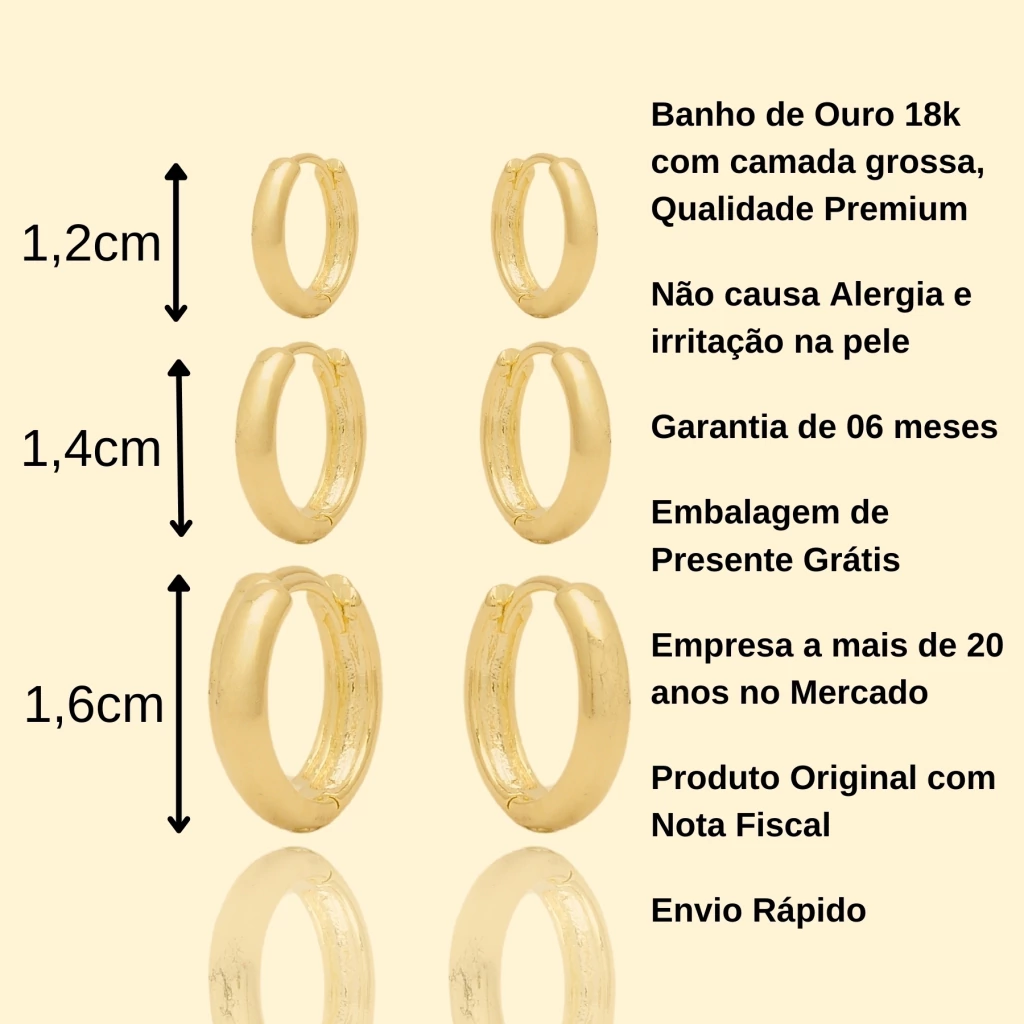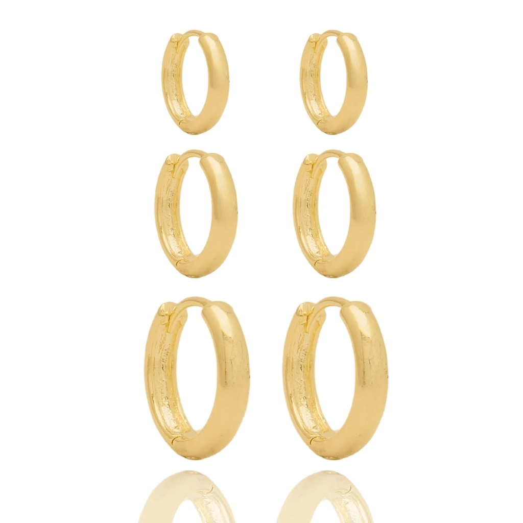 Kit Trio Brincos Argolas Lisa Banhada a Ouro 18k
