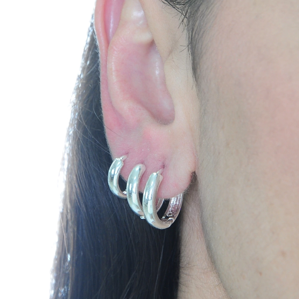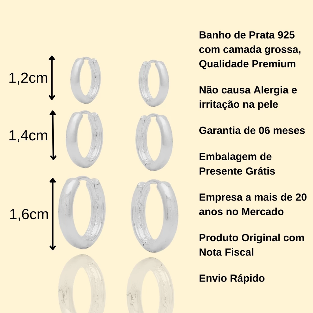 Kit Trio Brincos Argolas Lisa Banhada a Prata 925