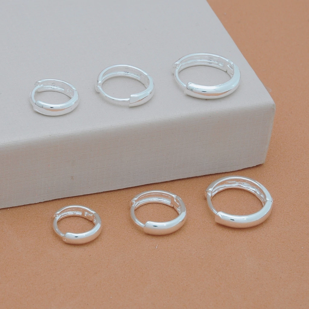 03 Pares Brinco Argola Lisa Banhada a Prata 925