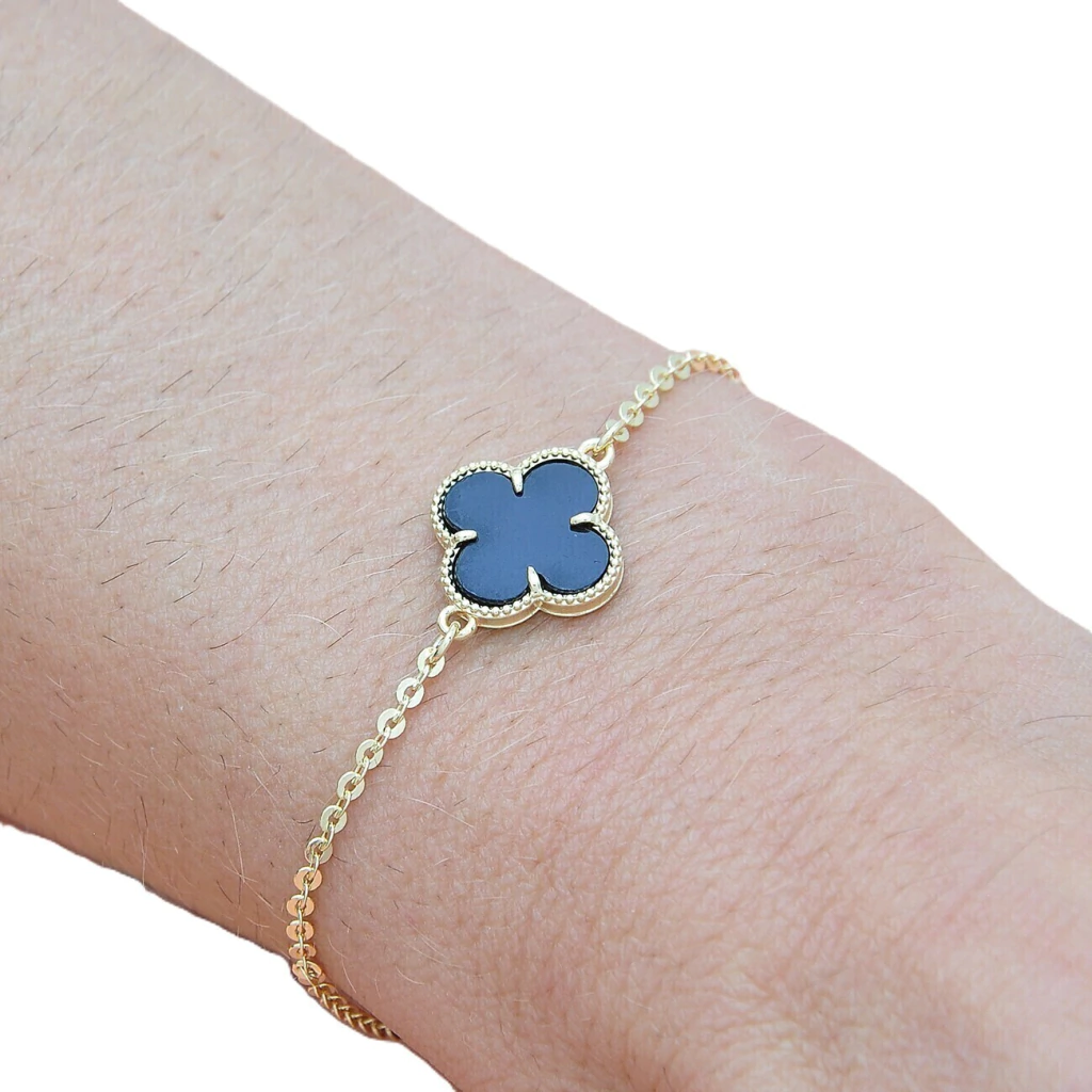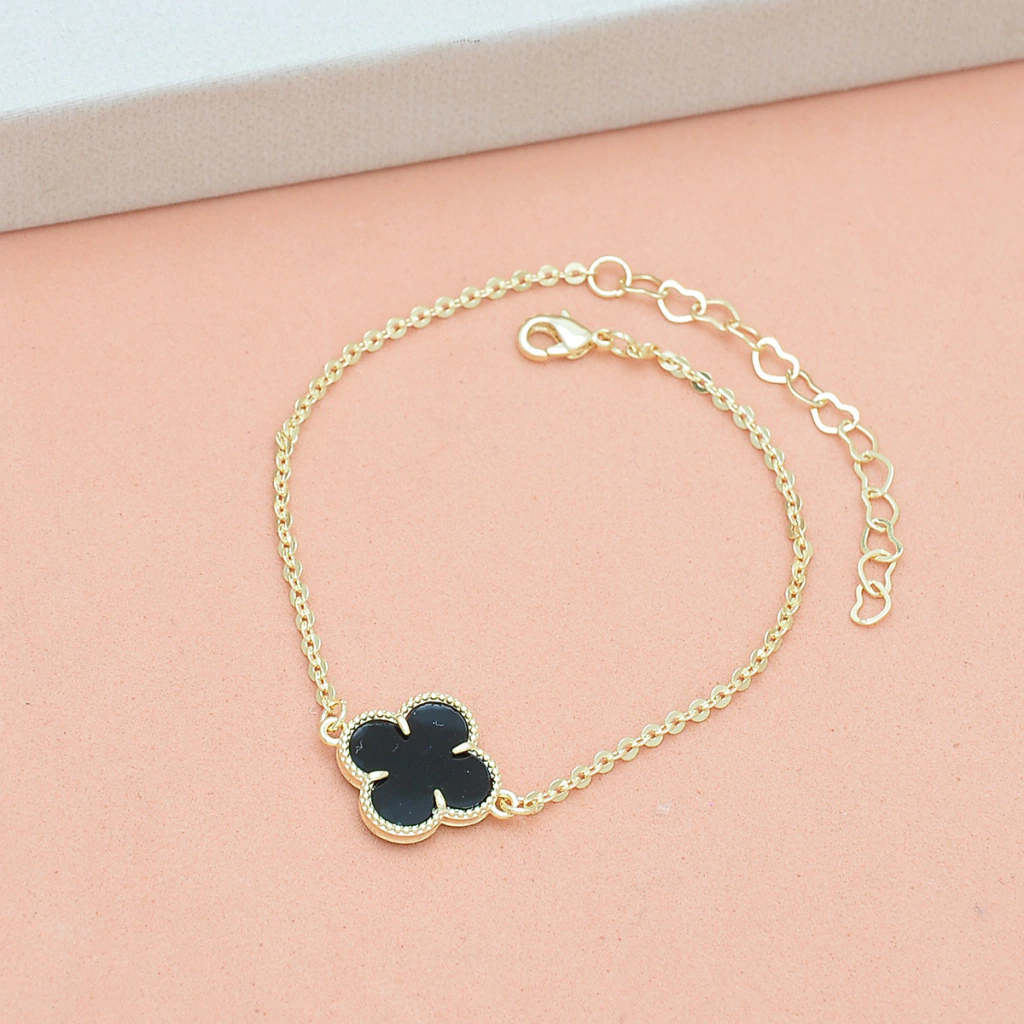 Pulseira 01 Trevo Preto Banhado a Ouro 18k
