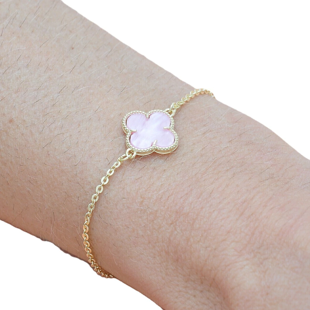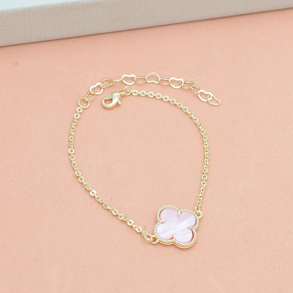 Pulseira 01 Trevo Rosa Banhado a Ouro 18k