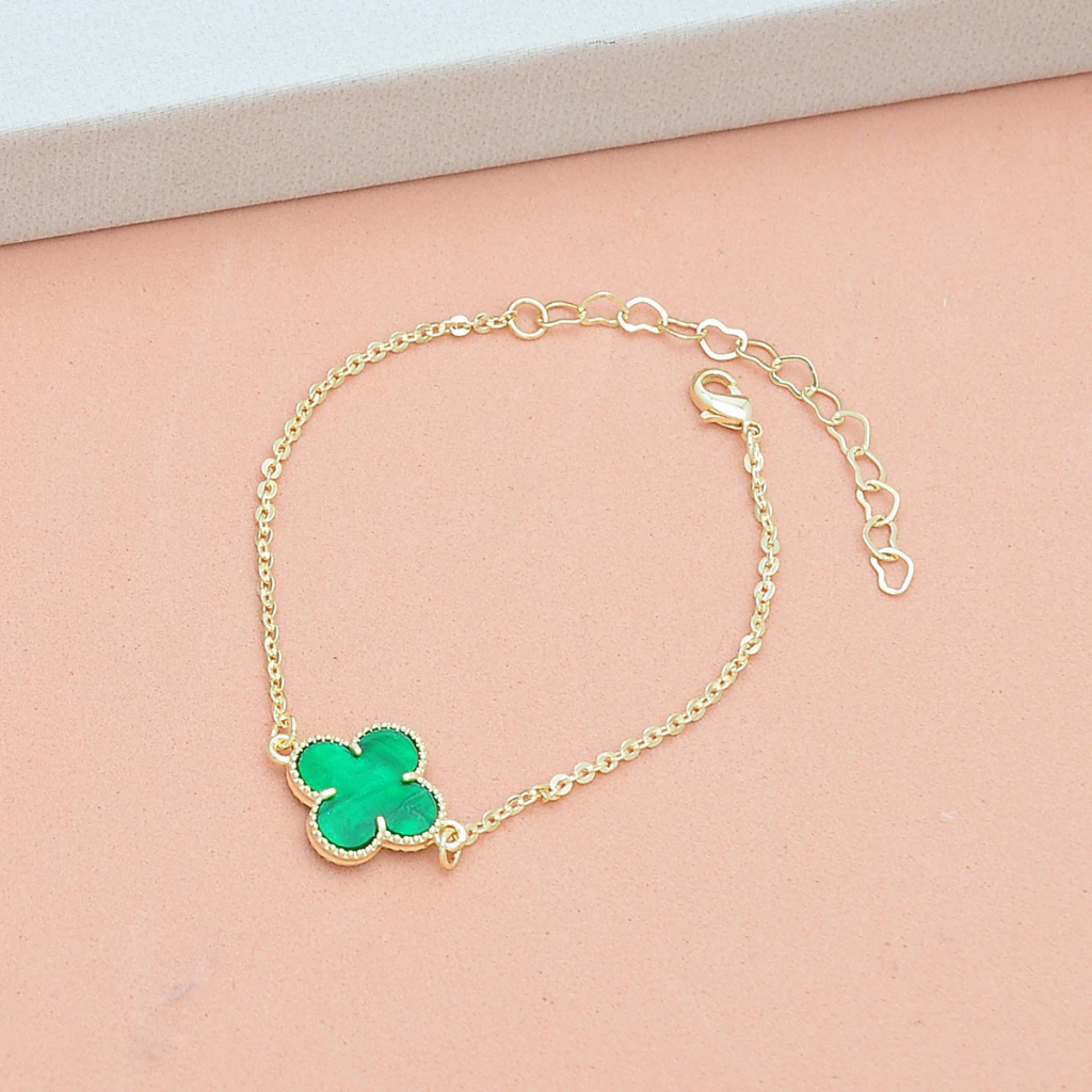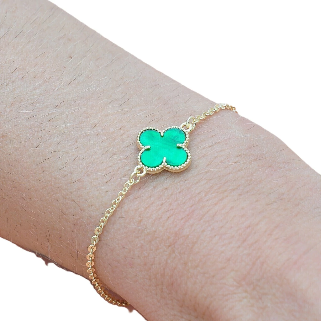 Pulseira 01 Trevo Verde Banhado a Ouro 18k