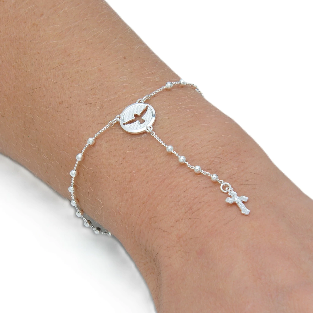 Pulseira Terço Espirto Santo Banhada a Prata 925