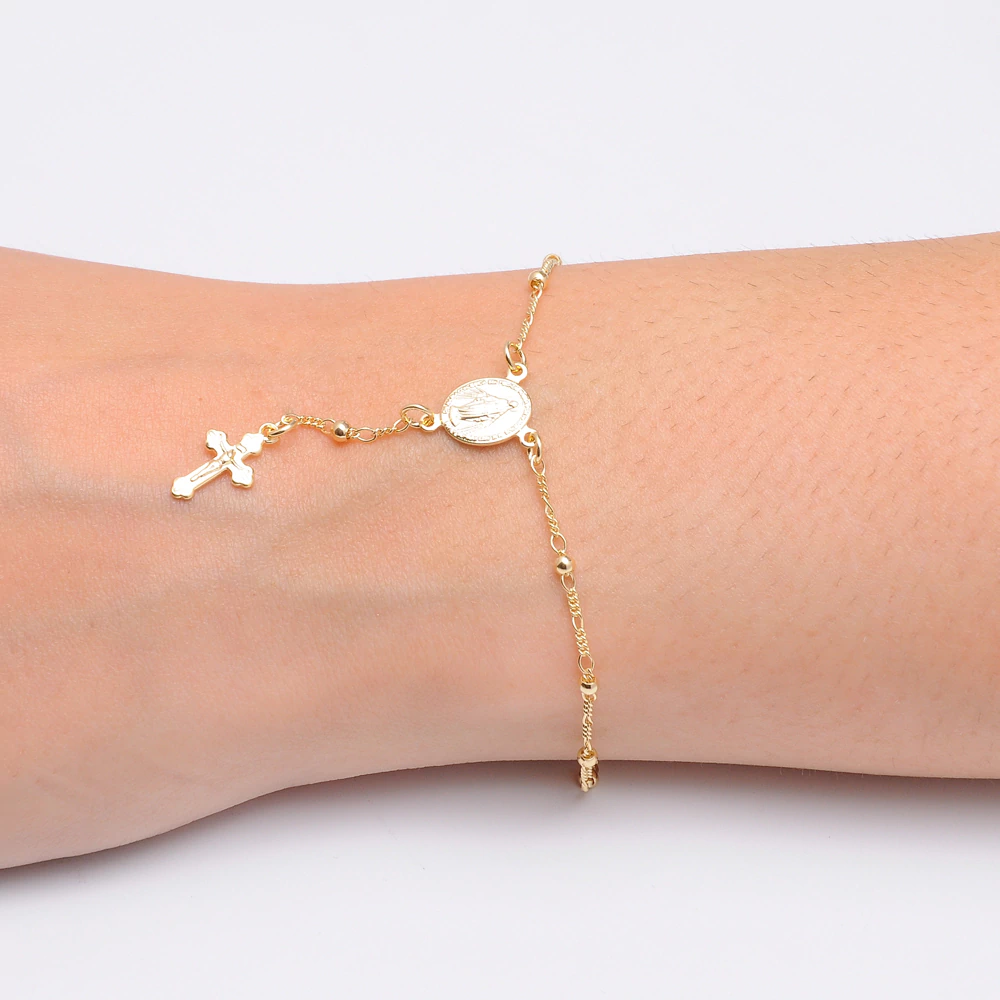 Pulseira Terço Nossa Senhora Aparecida Banhada a Ouro 18k