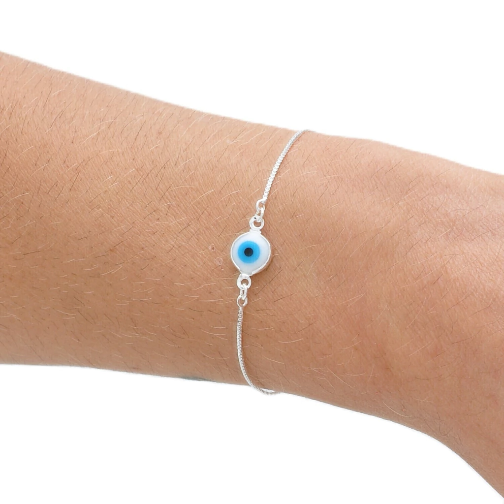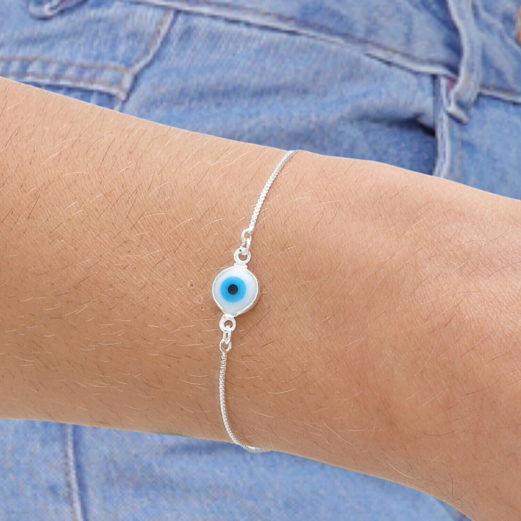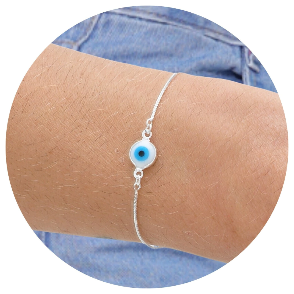 Pulseira Veneziana com Olho Grego Banhada a Prata 925