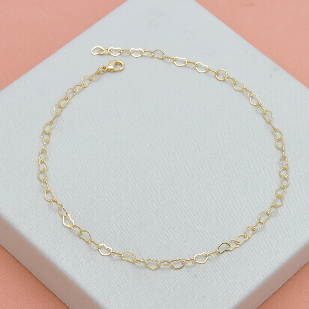 Tornozeleira Corrente Coração Banhada Ouro 18k