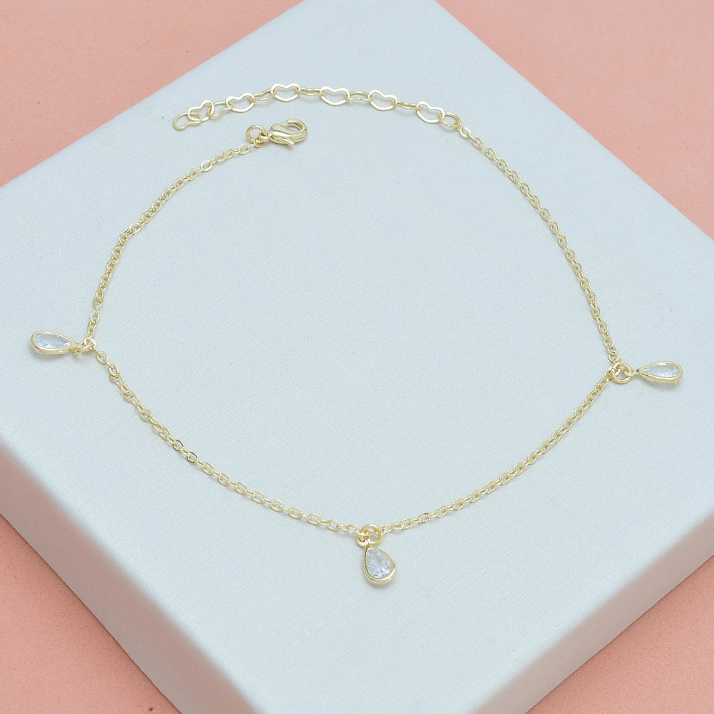 Tornozeleira Gota Cristal Banhada a Ouro 18k
